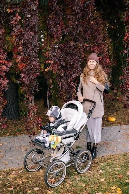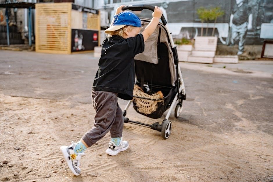 For storage or transport, the handle can rotate forward, minimizing the stroller’s profile. Always double-check the locking mechanism after each adjustment. Familiarize yourself with the handle’s range of motion and locking points for a smooth and safe experience. Refer to the user manual for visual guidance on handle operation.
